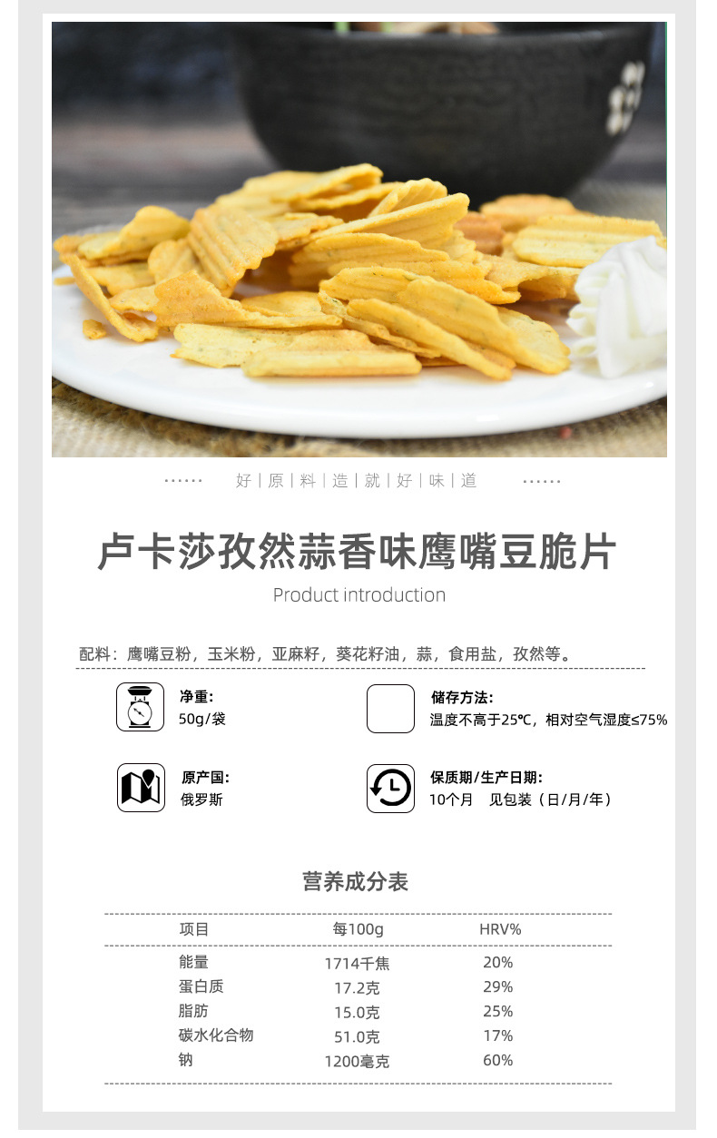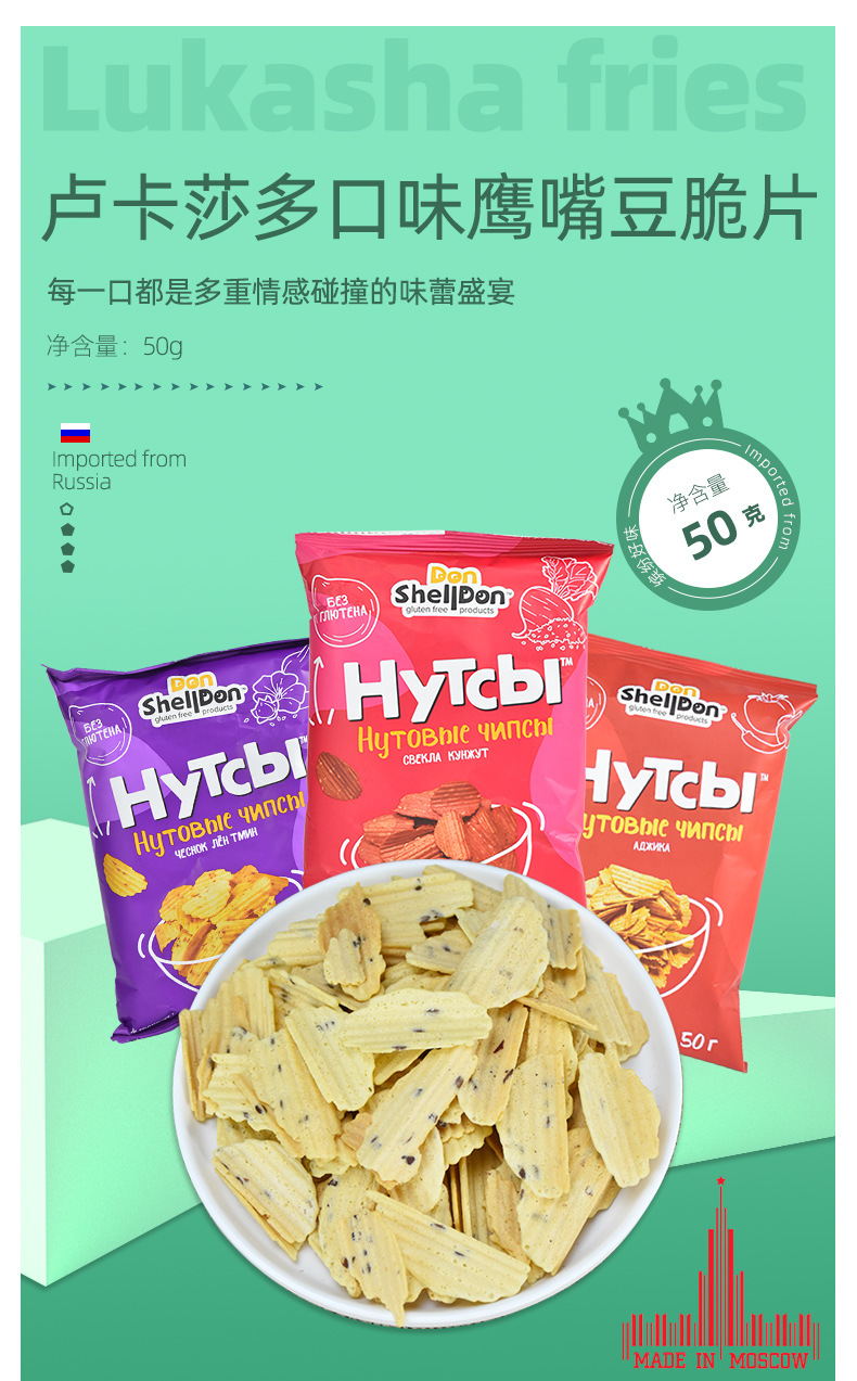 俄罗斯国家馆进口卢卡莎薯片香辣味甜芝麻味孜然蒜香味鹰嘴豆脆片 2件起批