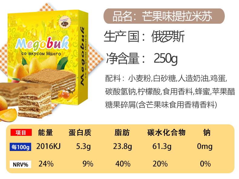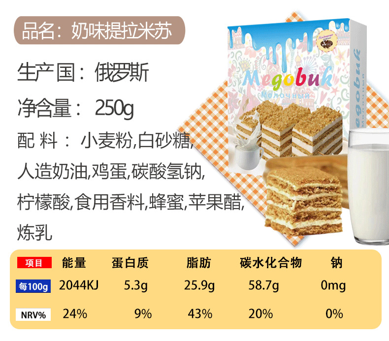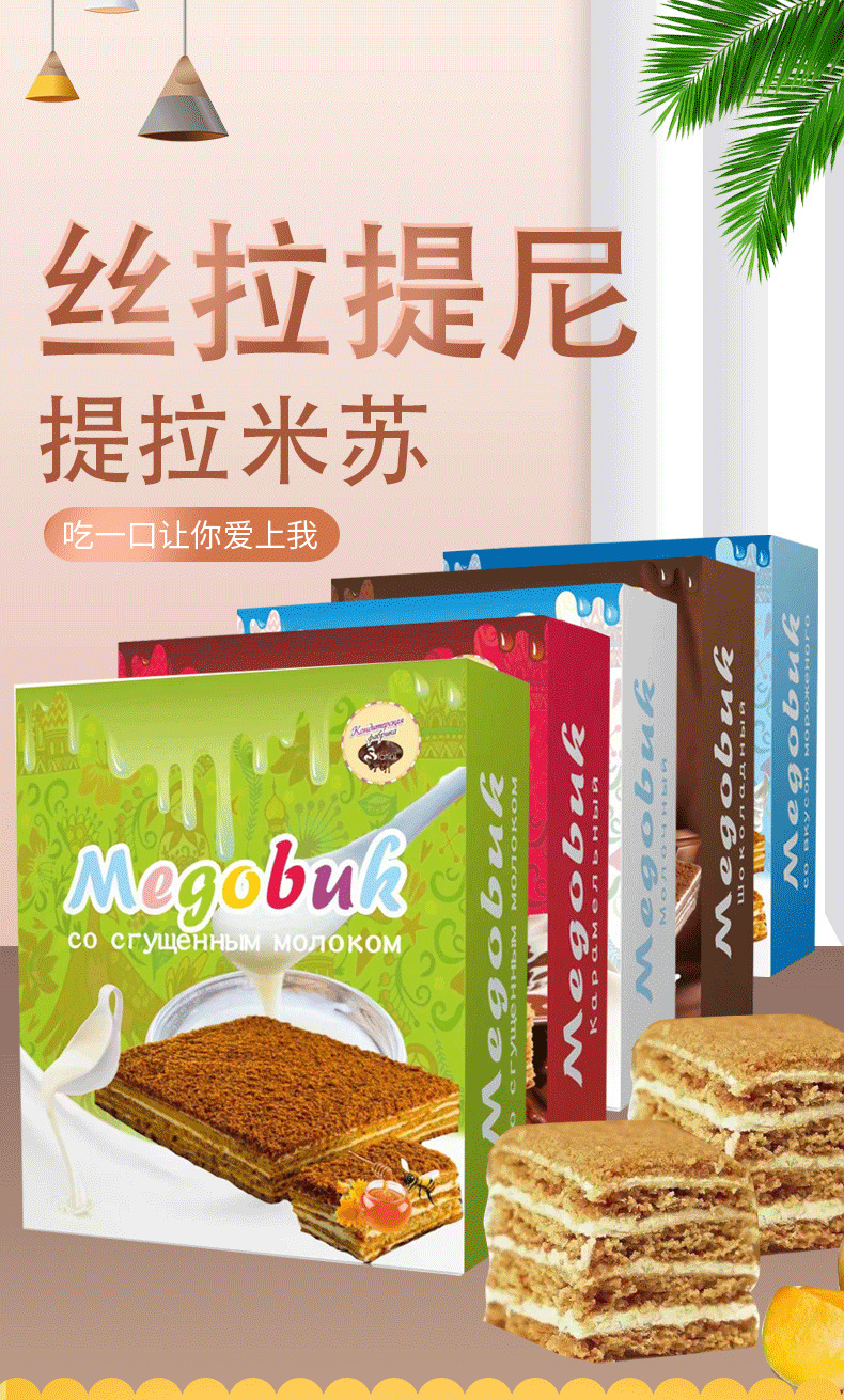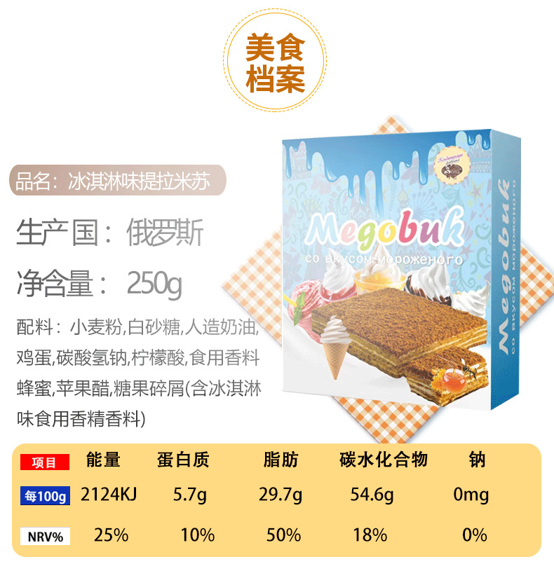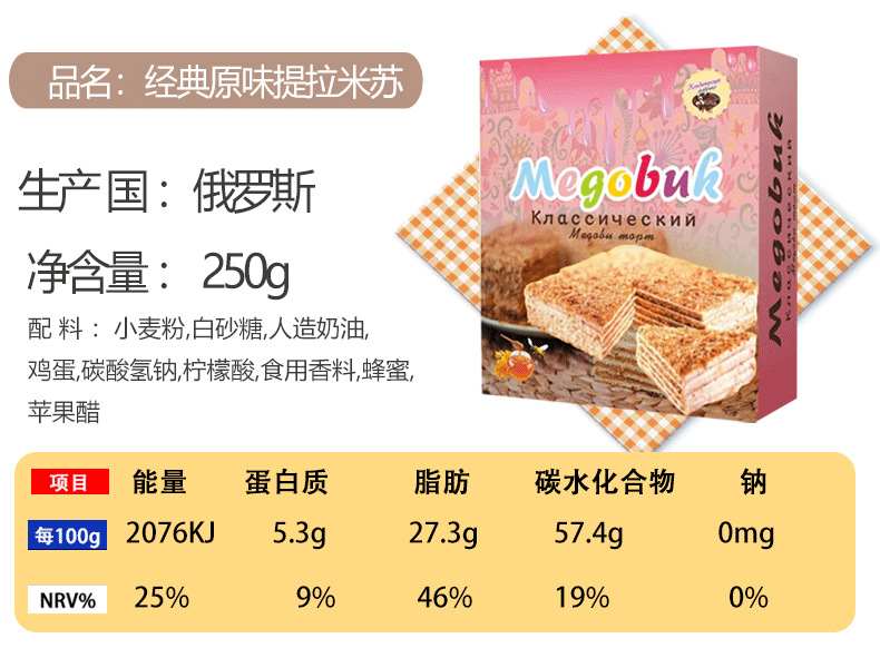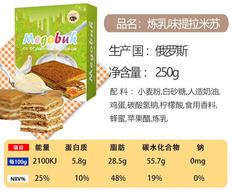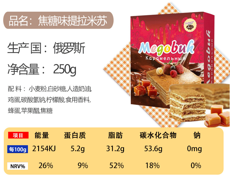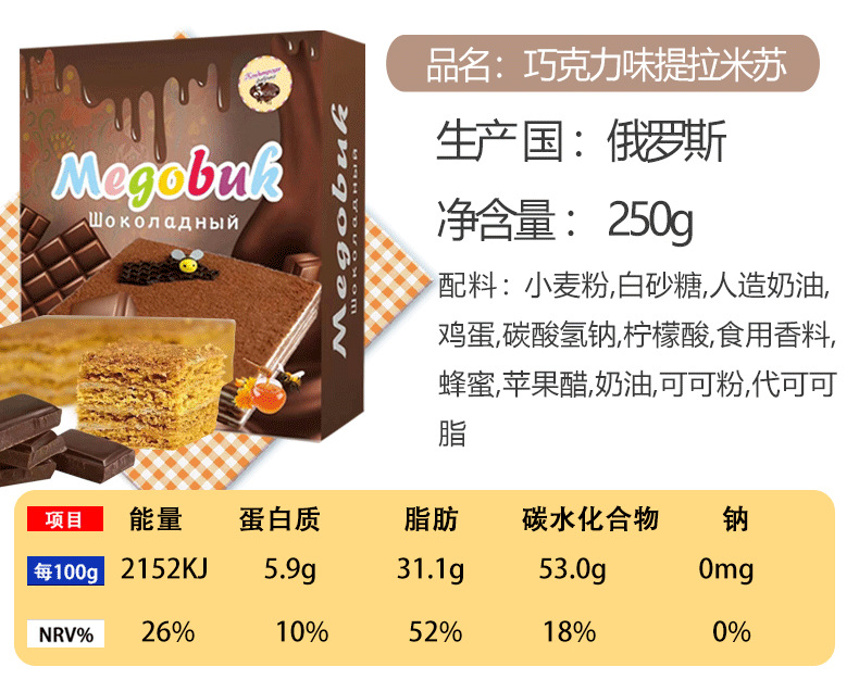 俄罗斯国家馆进口提拉米苏蛋糕风味千层蛋糕甜品代餐饱腹 2件起批